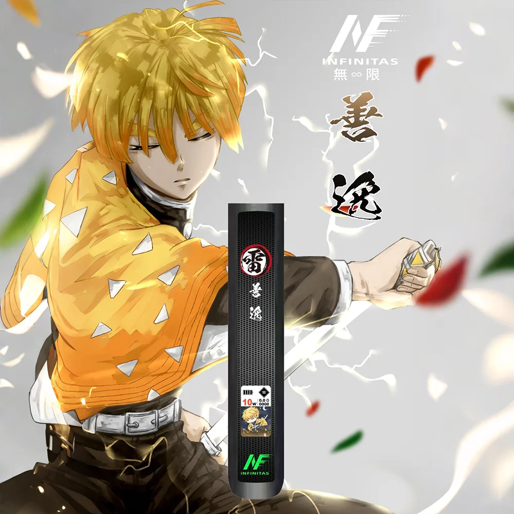INF六代鬼滅之刃聯名煙桿主機,將炭治郎、禰豆子等人氣角色帶入手中,兼具潮流外觀與高性能體驗。支援四/五/六代糖果,配備可調功率、口數與電量顯示功能,讓收藏與使用兼得。是鬼滅迷與電子煙愛好者的理想選擇。